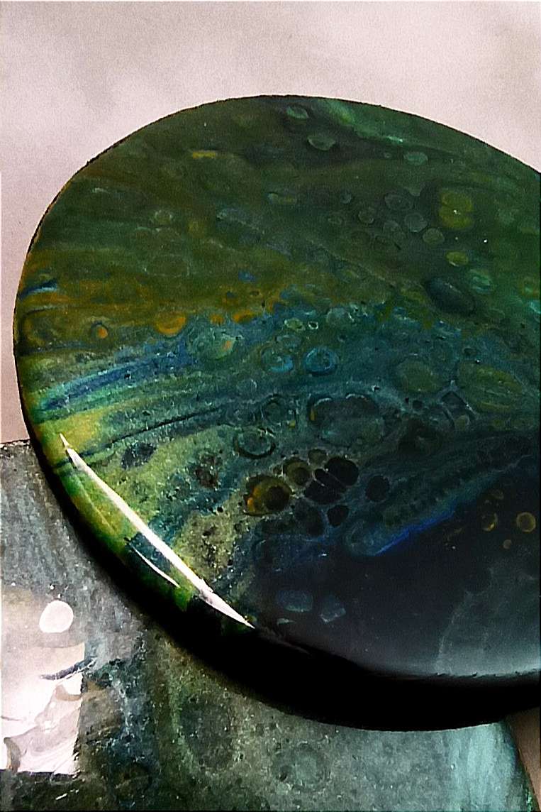 زیرلیوانی چوبی دست ساز با تکنیک آبستره سلولی دایره کد 006